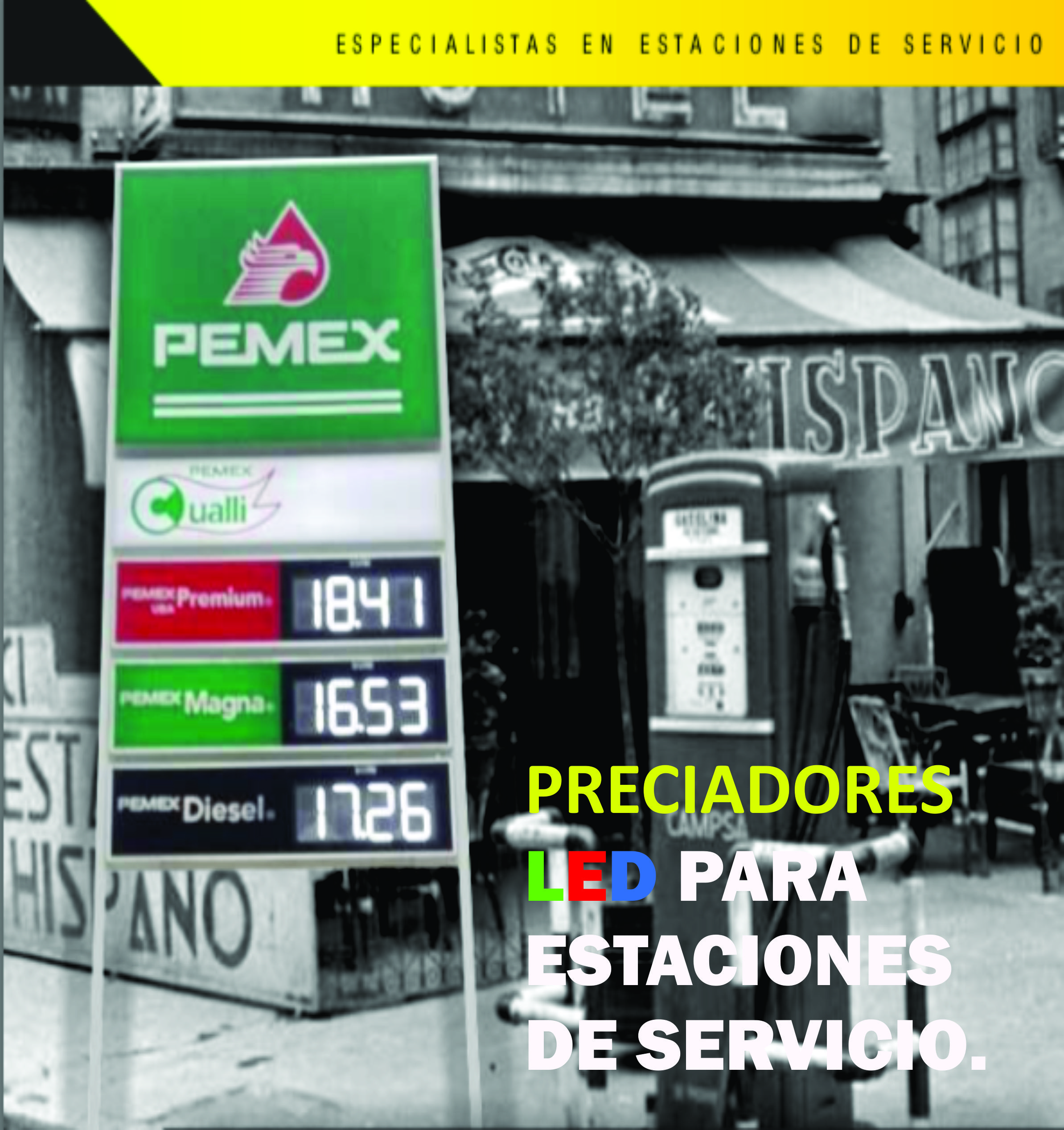 Tablero numérico LED diseñado para estaciones de servicio, de 4 dígitos, estructura 88.88, con fondo negro.